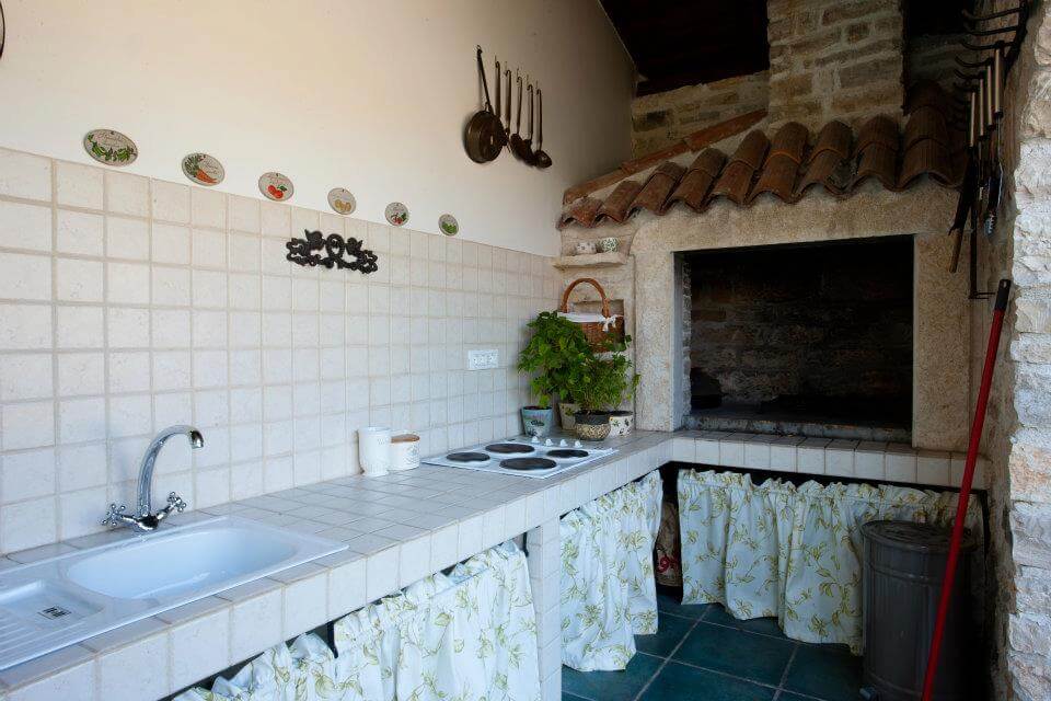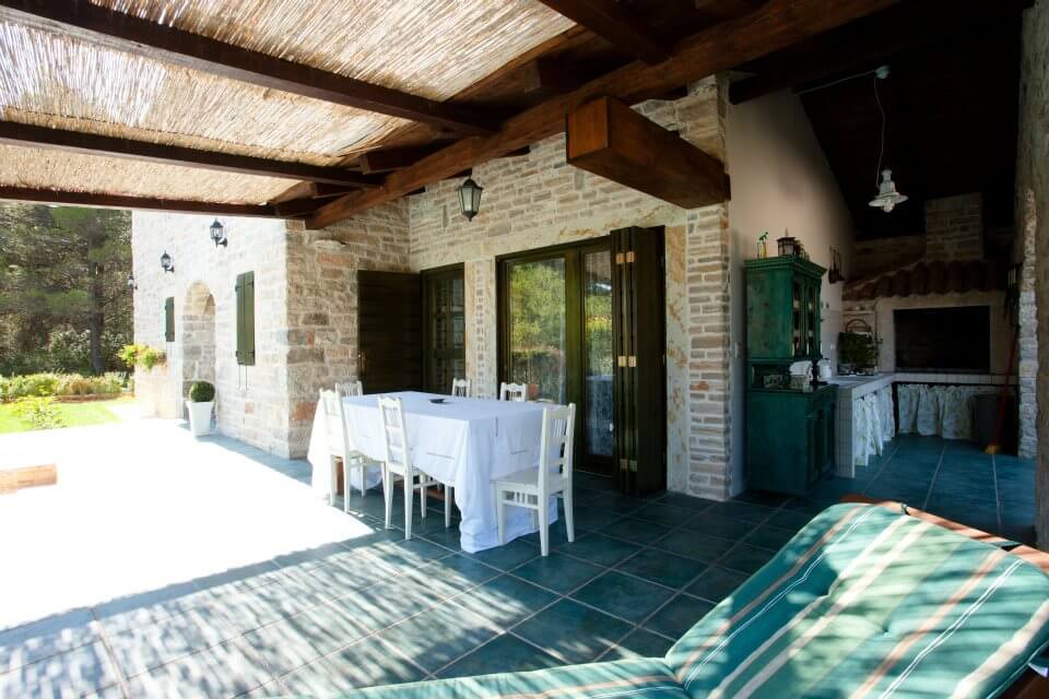 One of the most distinctive features of Dalmatian stone houses, and a prominent aspect of the villa, are the traditional “Škure.” These are wooden shutters that not only add to the aesthetic appeal of the villa but also serve practical purposes. Škure provide protection from the intense Mediterranean sun, help regulate indoor temperatures, and offer privacy. Traditionally painted in a green or blue color, they are an iconic element of Dalmatian architecture.