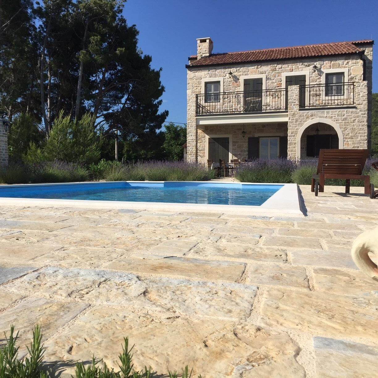A second stone villa was built in 2016 continuing the Dalmatian style of its predecessor. The villa’s exterior blends natural stone, harmonizing with the Mediterranean landscape.